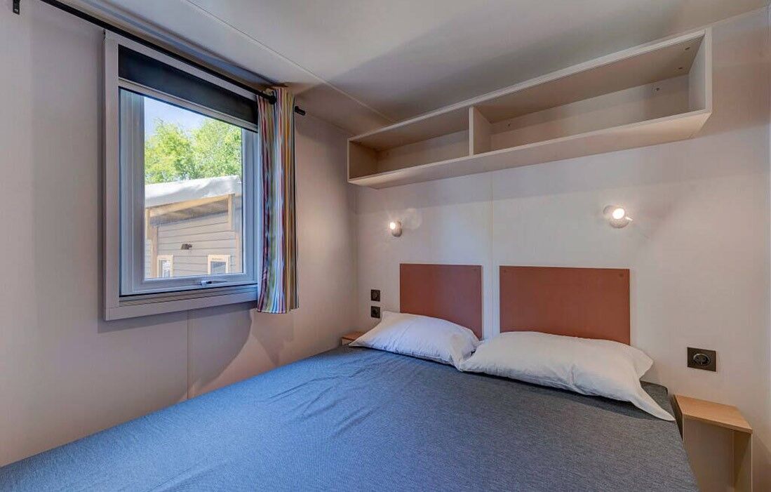 The 4/6-person (2 bedrooms) and 6-person (3 bedrooms) mobile homes are equipped with a kitchenette (microwave), shower room, separate toilet, terrace with garden furniture and 1 parking space per mobile home.