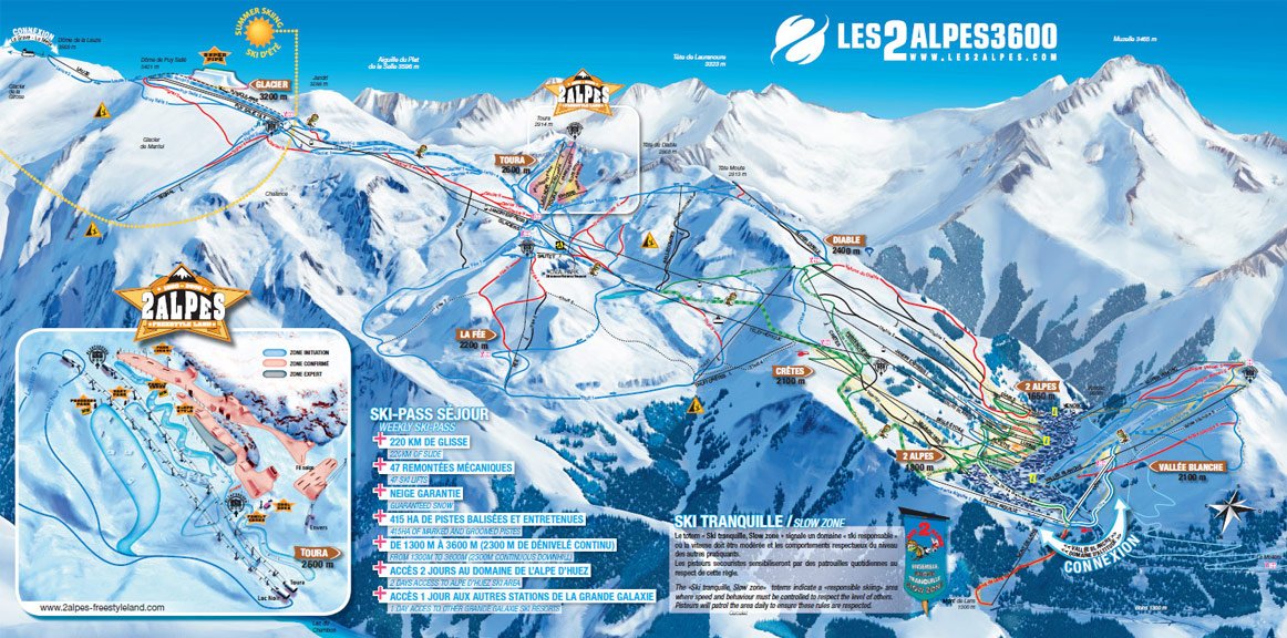 Du village de Mont de Lans à 1300m d'altitude, jusqu'au Glacier, qui culmine à 3600m, 410h de pistes damées accueillent les passionnés du ski pour des descentes mémorables.